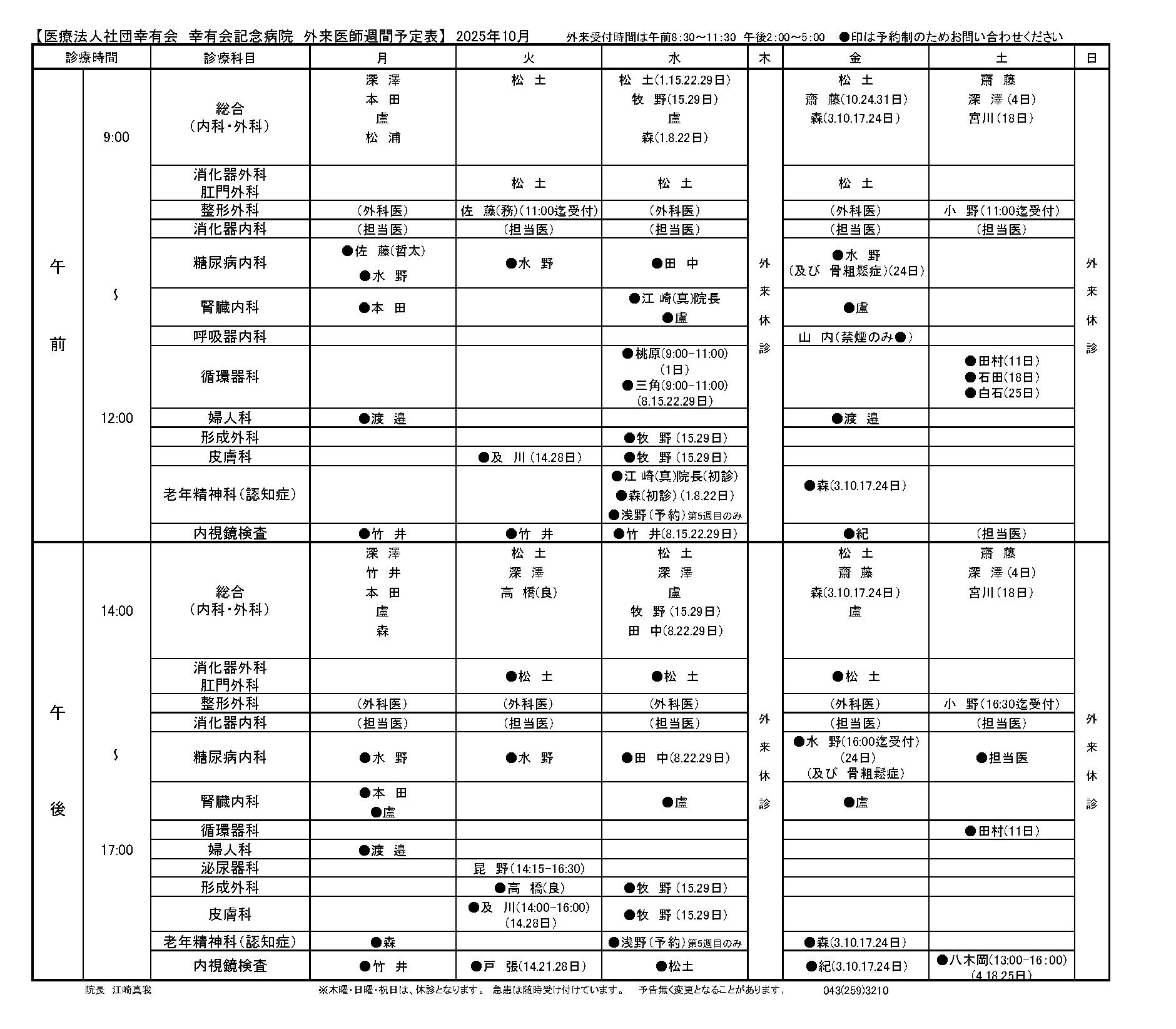 診療科・担当医によって一部受付時間が異なる場合がございます。