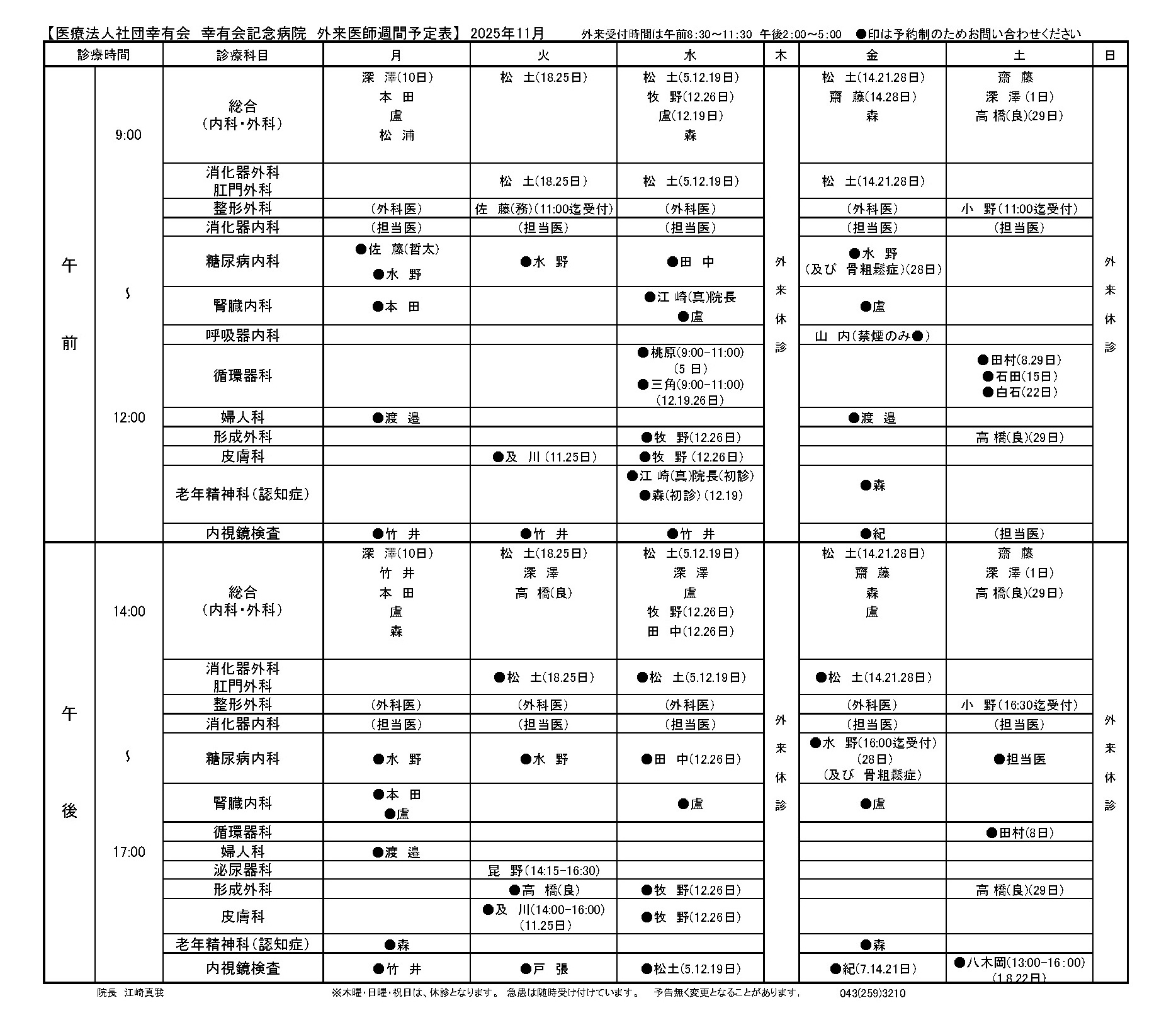 診療科・担当医によって一部受付時間が異なる場合がございます。