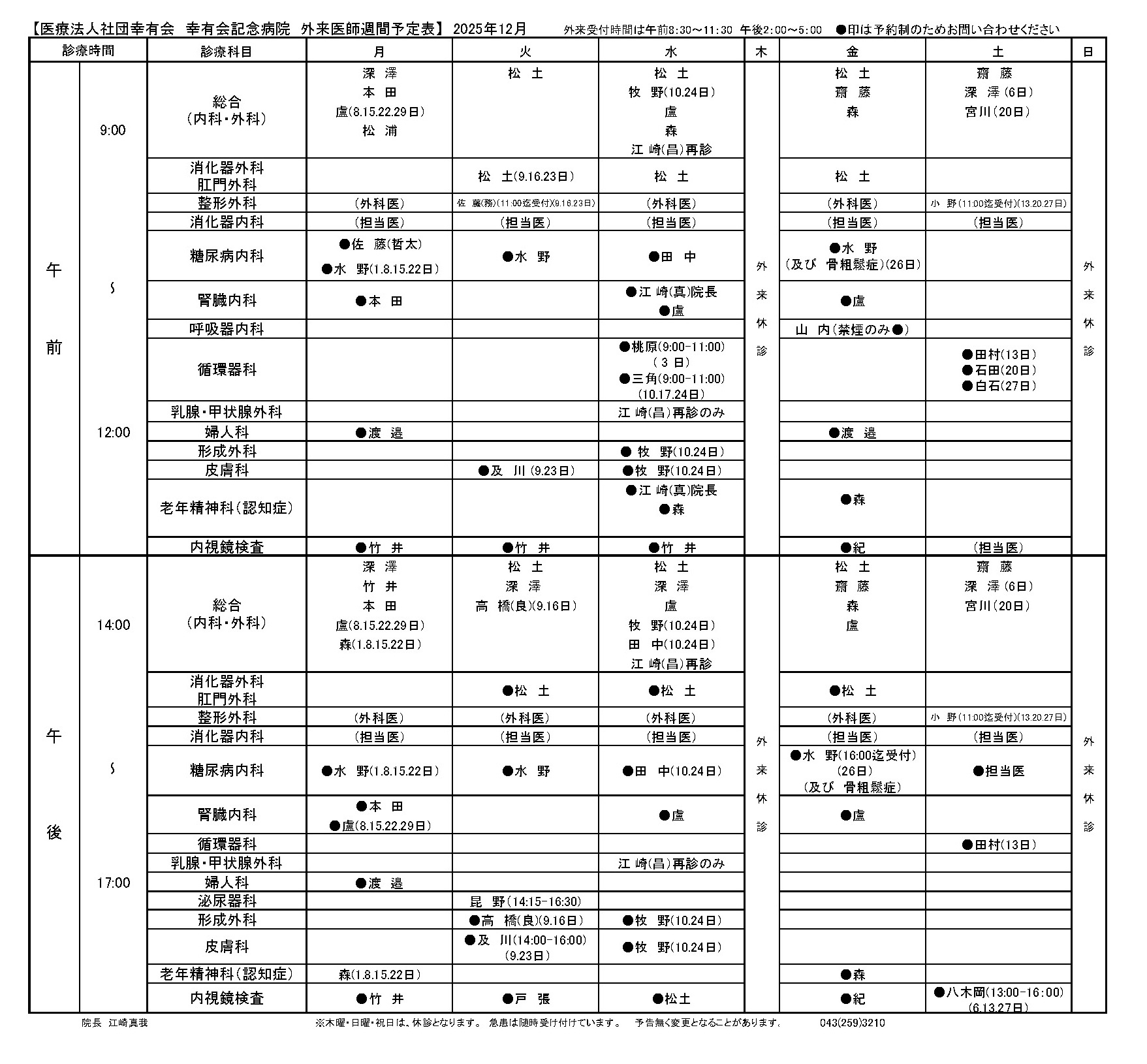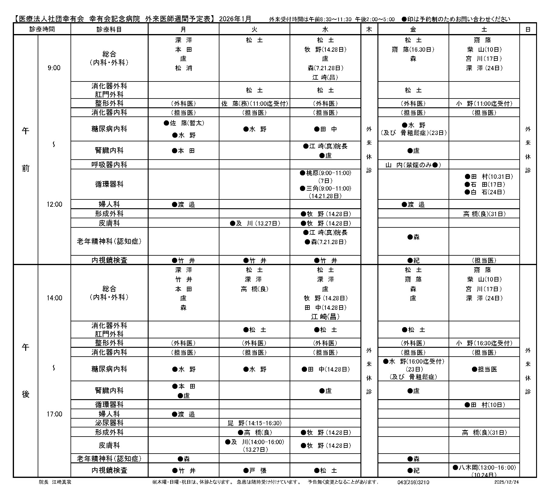 (診療開始時刻は午後 2:00)
